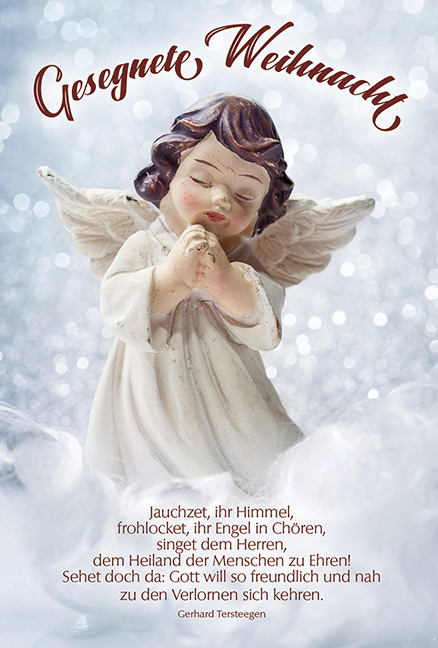 Unsere Postkarten eignen sich hervorragend für kleine Grüße jeder Art, aber auch als kleine Mutmacher an der Wand, am Spiegel oder auf dem Tisch.Serie mit 4 gleichen Postkarten.Gesegnete WeihnachtJauchzet, ihr Himmel,frohlocket, ihr Engel in Chören,singet dem Herren,dem Heiland der Menschen zu Ehren!Sehet doch da: Gott will so freundlich und nah zu den Verlornen sich kehren.Gerhard Tersteegen