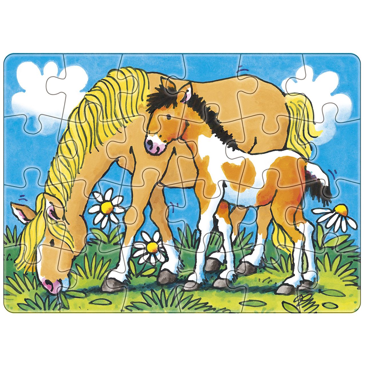 Kleiner Spielespaß: Mini-Puzzle- Thema: Pferde- mit 24 Teilen- Format: 16,8 x 12,3 cm- beliebtes Motiv von Lutz Mauder- in einem kleinen farbigen Karton verpackt