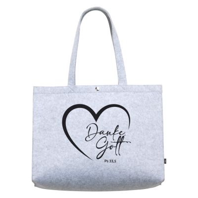 Geräumige Einkaufstasche aus RPET-Filz, hergestellt aus recycelten PET-Flaschen. Verfügbar in zwei trendigen Farben. In dieser Tasche ist viel Platz z.B. für Einkäufe, Ausflüge, Urlaubsreise,