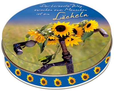 Vier Untersetzer in der passenden Blech-Schmuckdose.Eine wunderschöne Ergänzung für unsere Tischgestaltung sind diese, mit den beliebten Kawohl-Motiven dekorierten Untersetzer aus Blech. Die Unterseite ist mit Kork versehehen.